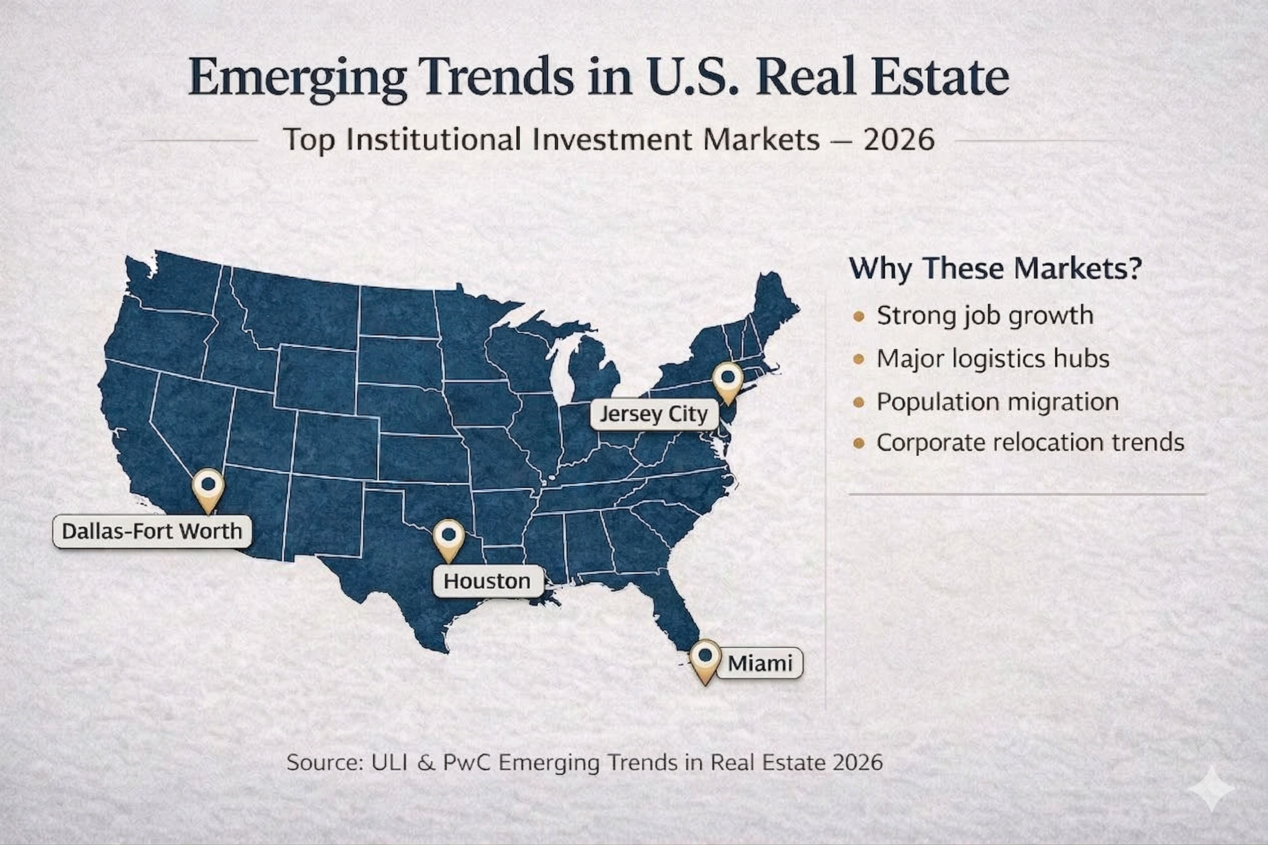 The 2026 ULI and PwC rankings reinforce a conclusion that has been building for several years: market selection is the most important variable in commercial real estate investment, and the markets that combine infrastructure advantages, policy competitiveness, relative affordability, and diversified demand are increasingly separating themselves from the rest of the field.